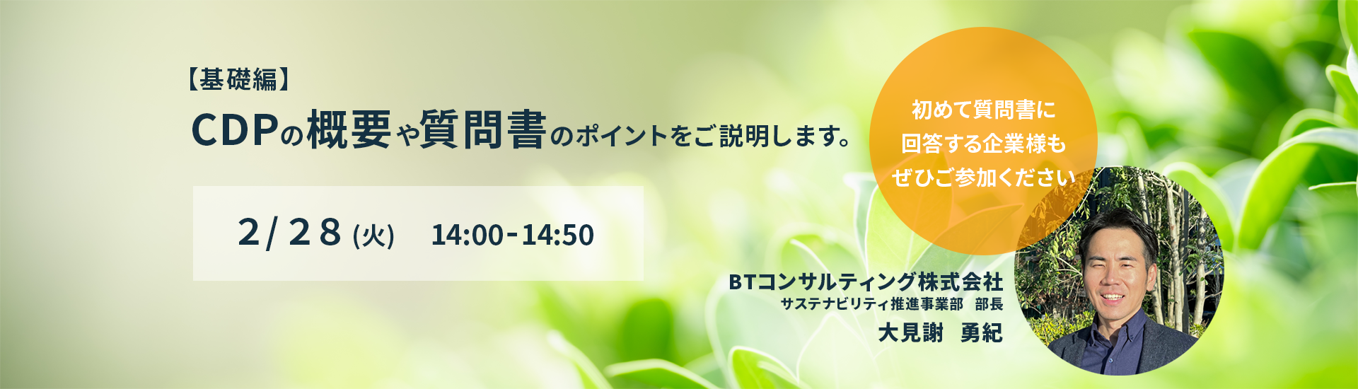 CDPの概要から開示、評価のポイントまで、どこから手を付けていいか分からないという企業様へ向けたオンラインセミナーを開催いたします。