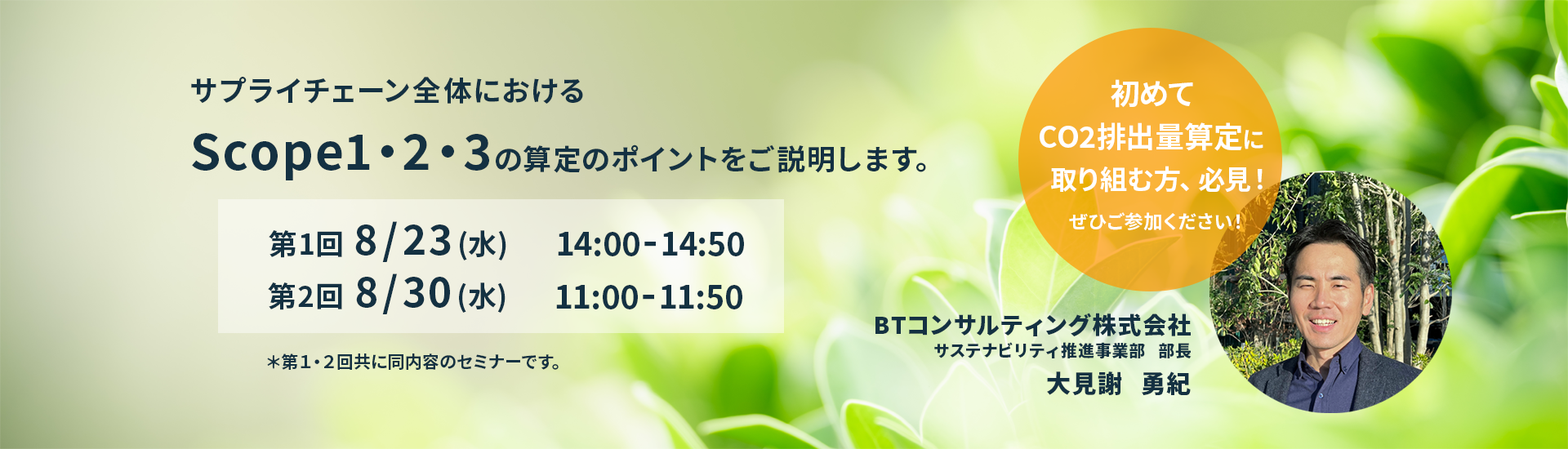 サプライチェーン全体におけるCO2排出量算定などについて、どこから手を付けていいか分からないという企業様へ向けたオンラインセミナーを開催いたします。