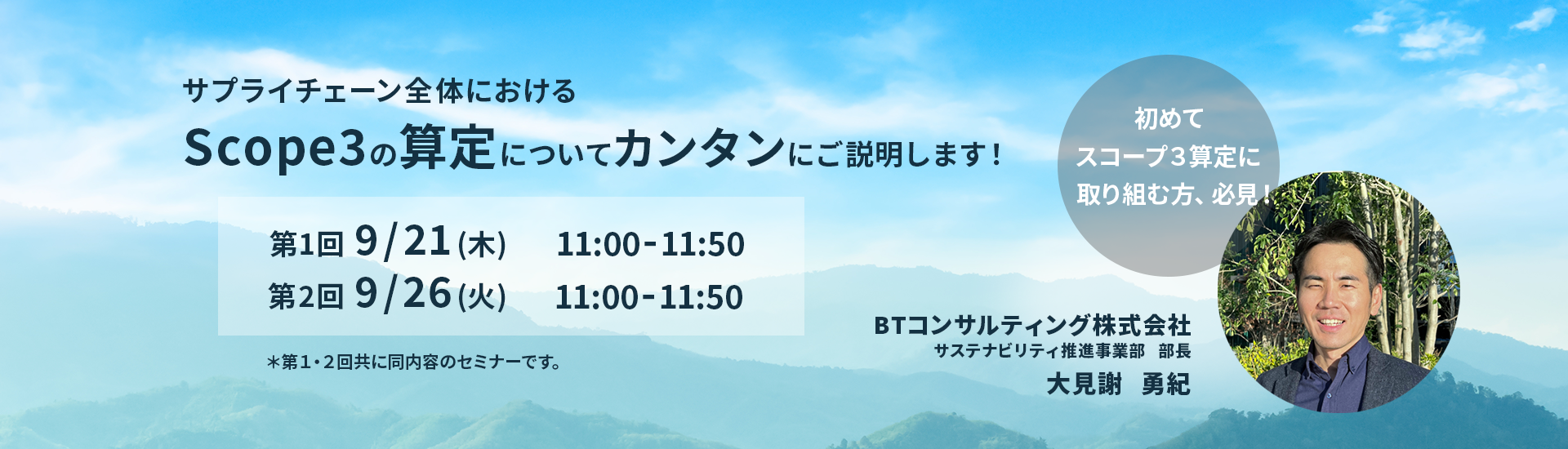 CO2排出量算定で特に複雑なScope3(スコープ3)に焦点を当て、カンタンにぎゅっとまとめたオンラインセミナーを開催します。
