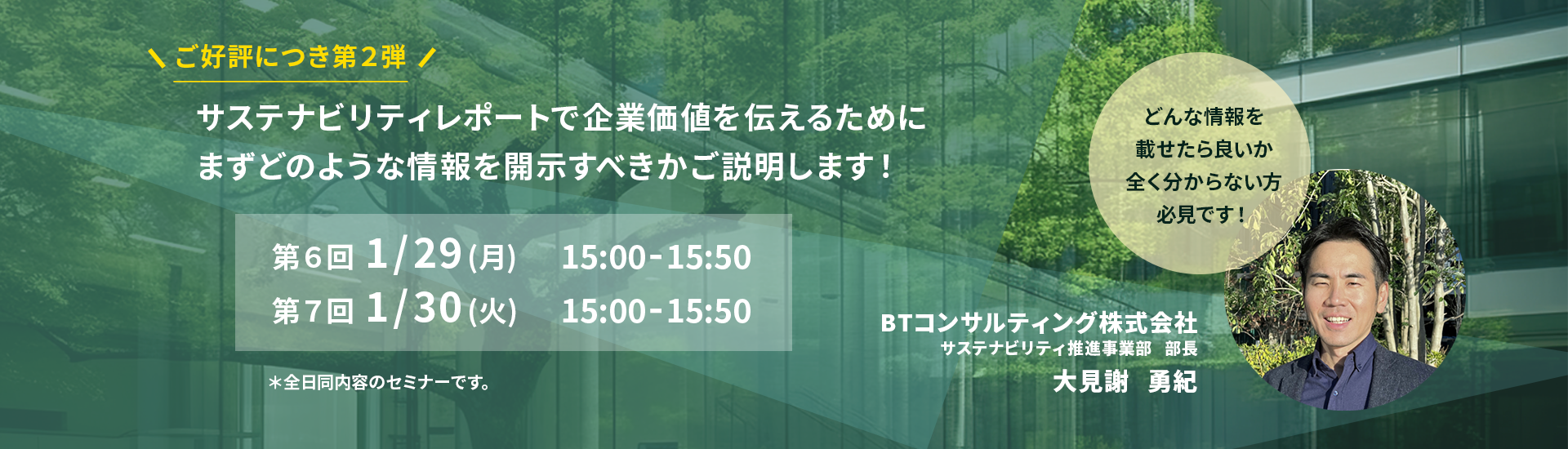 近年、ESG経営の重要性が高まり、上場企業にはサステナビリティ情報の開示が求められています。サステナビリティレポートを発行したことがないという企業様へ向けたオンラインセミナーを開催!